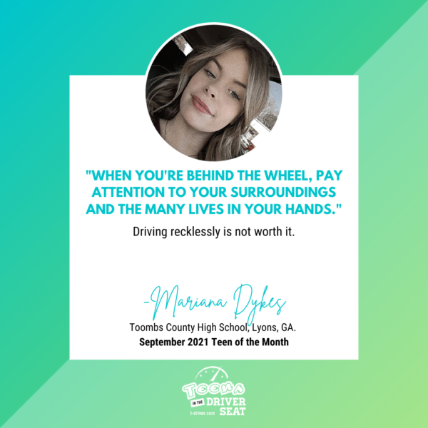 Q: What would you say to inspire other teens to care more about safe driving/traffic safety?