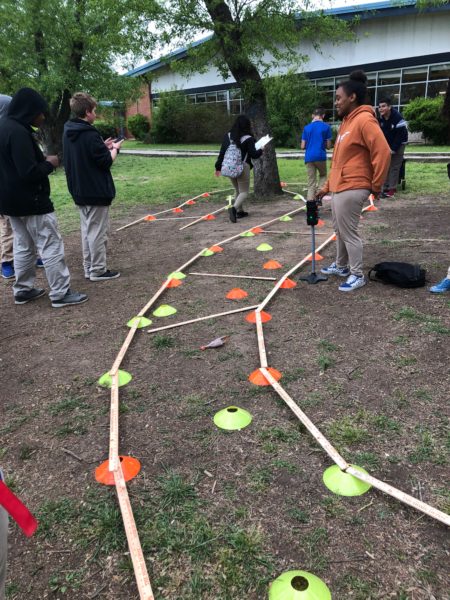 Show the dangers of being distracted while walking. Students go through the course with and without being distracted while timed and are evaluated by time and number of objects knocked over.