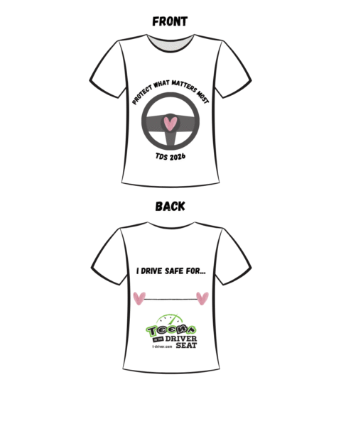 The winning shirt designs could be used to create an updated design for our Teens in the Driver Seat high school program shirt. The winning reel will be posted and highlighted on our social media channels. The winning PSA video will go on to be re-produced by an Emmy-award-winning director courtesy of the National Road Safety Foundation.